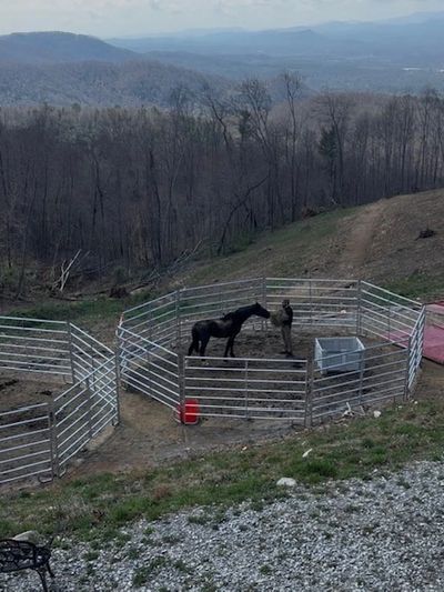 Bolding (Black Gelding) is the most untrusting of the horses. He is incredibly stubborn and is the only horse we are unable to touch. While the other horses could be touched in about an hour of training, Bolding will only tolerate a touch from the training whip on his nose. He is incredibly intelligent and understands what is being asked of him, but he will be the most challenging horse to tame. We are confident that with patience and perseverance, he will become an excellent horse.