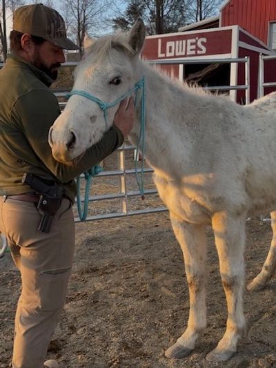 December 20th, 2024 was a big day for the Righteous Life Rescue Ranch. Our first rescued wild mustang "Sigured" (Sig for short) found his forever home with veteran Josh Warren in Kentucky. Sig was part of a large round up purchased from the Navajo nation and diverted from kill buyers. He was among a group of 50 horses organized by Dawn Olivieri and her rescue, the Moon Mountain Sanctuary.
